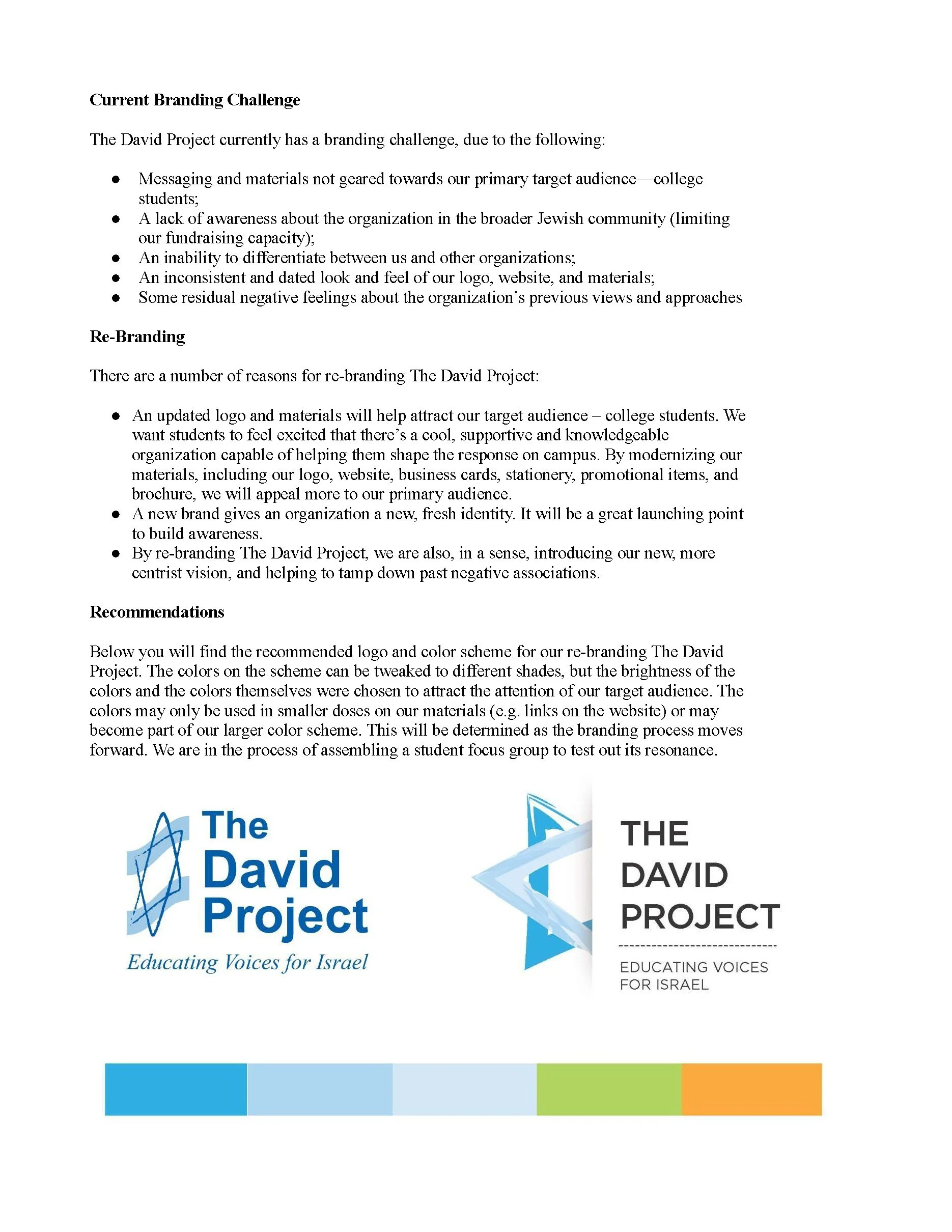 I led a comprehensive rebrand of The David Project, an international organization, working closely with leadership, board members, and staff to redefine the brand’s positioning and communications.