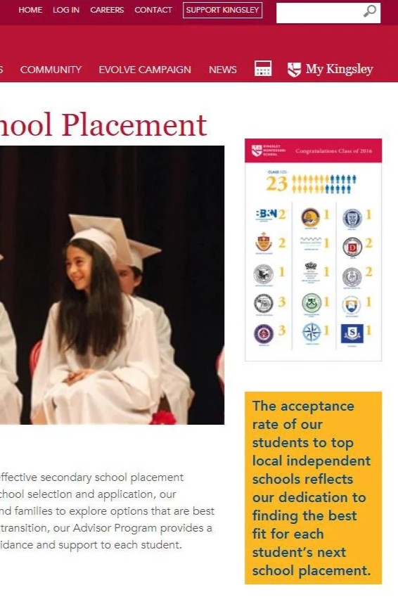 This included reorganizing content, refining calls to action, and ensuring consistency across pages—making it easier for prospective and current families to find what they need and understand what sets Kingsley apart.