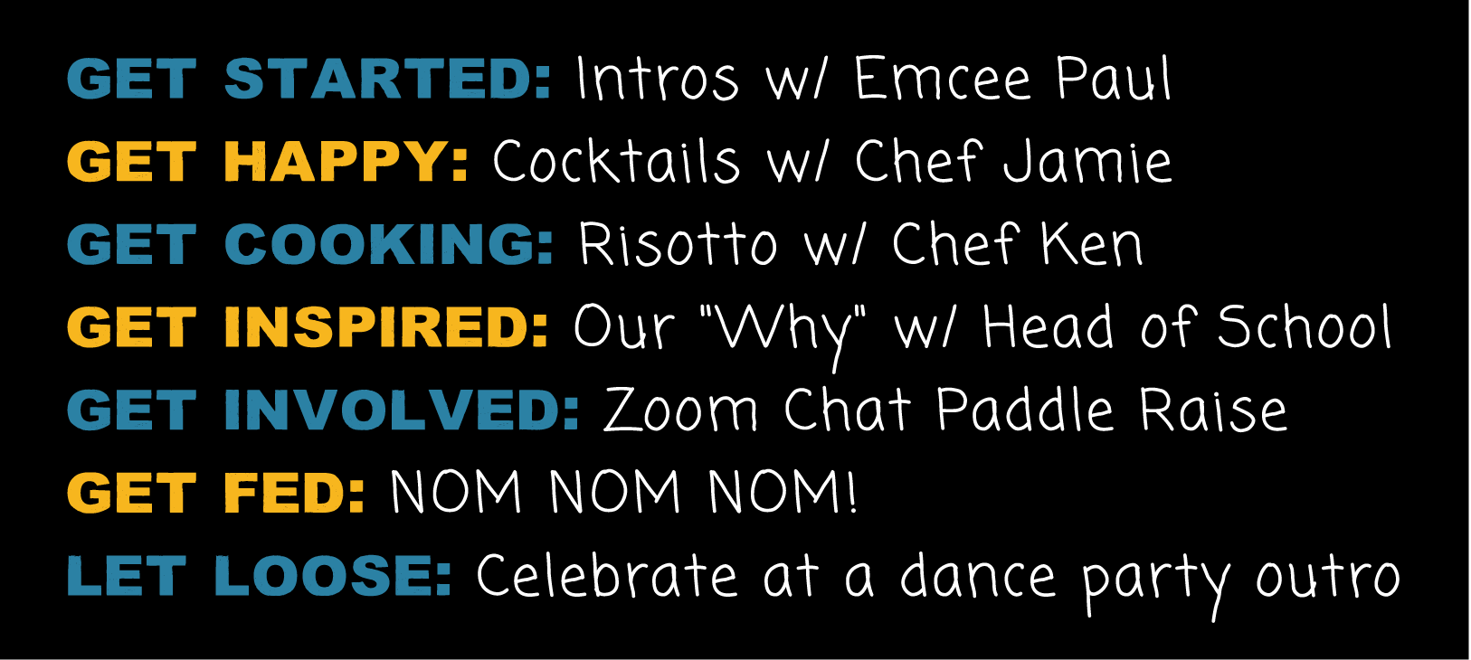 The goal was to create a cohesive, engaging system that could translate seamlessly across digital, print, and at-home participation. Designed to adapt quickly, the brand extended beyond a single event identity into a flexible framework supporting promotional materials, event communications, and interactive elements like recipe kits and virtual programming.